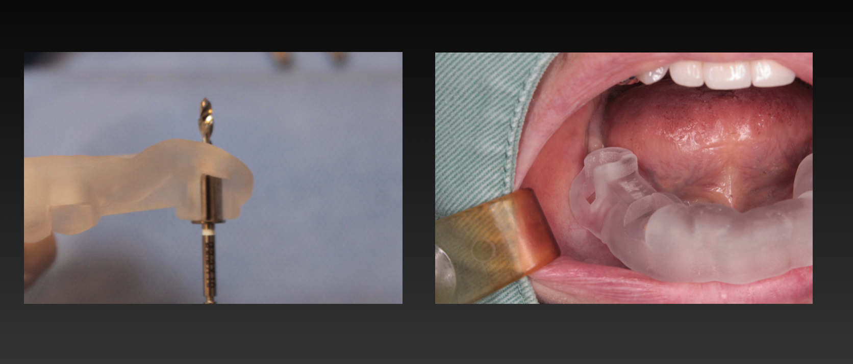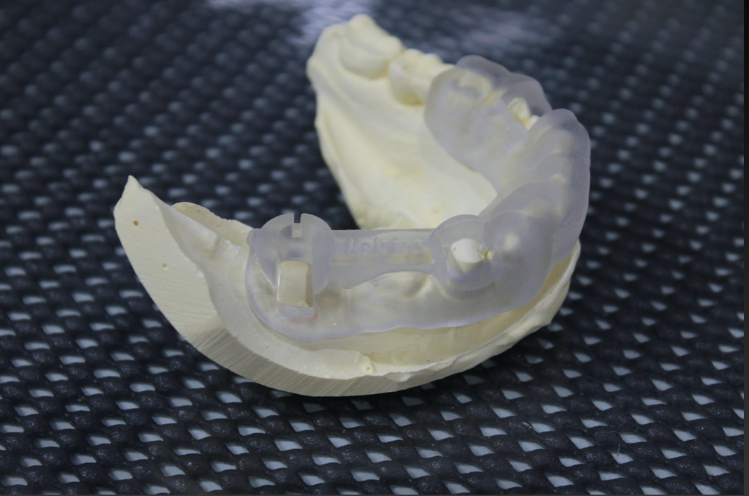 この症例は2本のインプラントを並行に入れなければならない為、オーダーメイドの手術用インプラントガイドを準備しました。